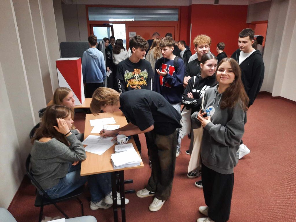 W październiku uczniowie klas pierwszych i drugich wzięli udział w spotkaniu na temat wyborów parlamentarnych. Na koniec każdy uczeń on line mógł sprawdzić swoje wyborcze preferencje korzystając z latarnika wyborczego oraz barometru wyborczego, a następnie w naszym liceum odbyły się szkolne prawybory parlamentarne:)))