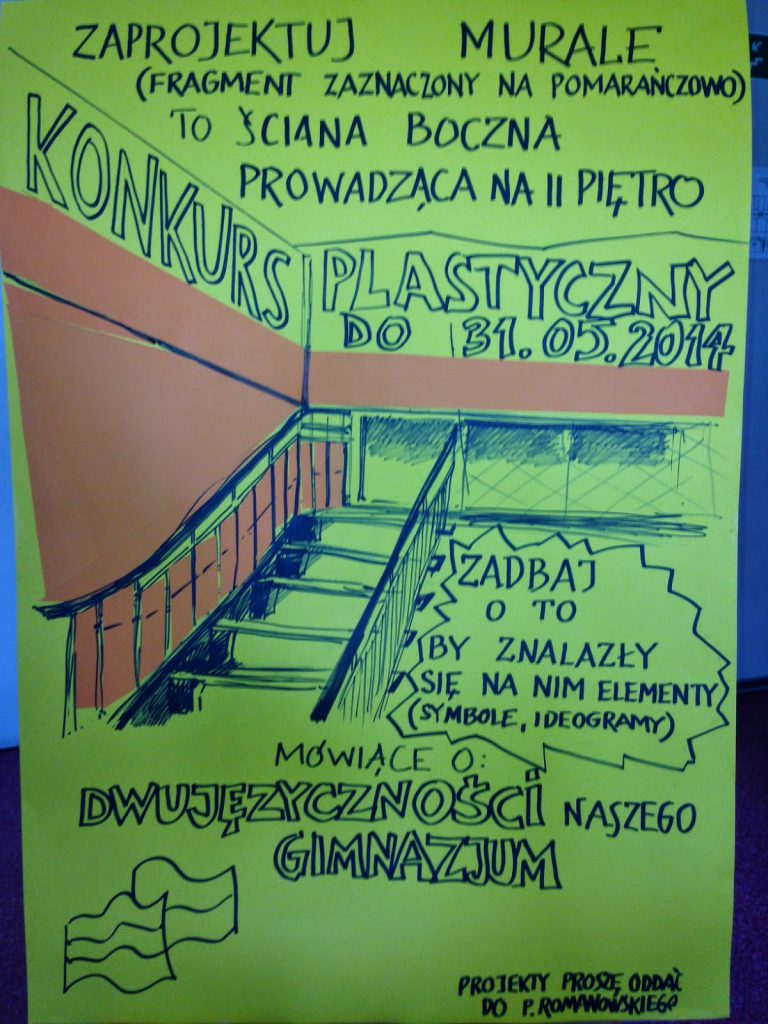 Kochani! Kto żyw, niech łapie za spray, farbę, pędzel – akcja „Mural” rusza! Ogłaszamy konkurs na projekt murala, który powstanie na ścianie bocznej na klatce schodowej! Zobaczcie plakat – tam wszystkie informacje!