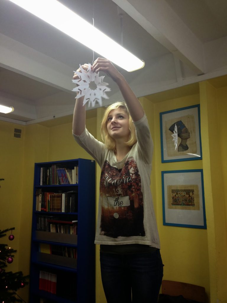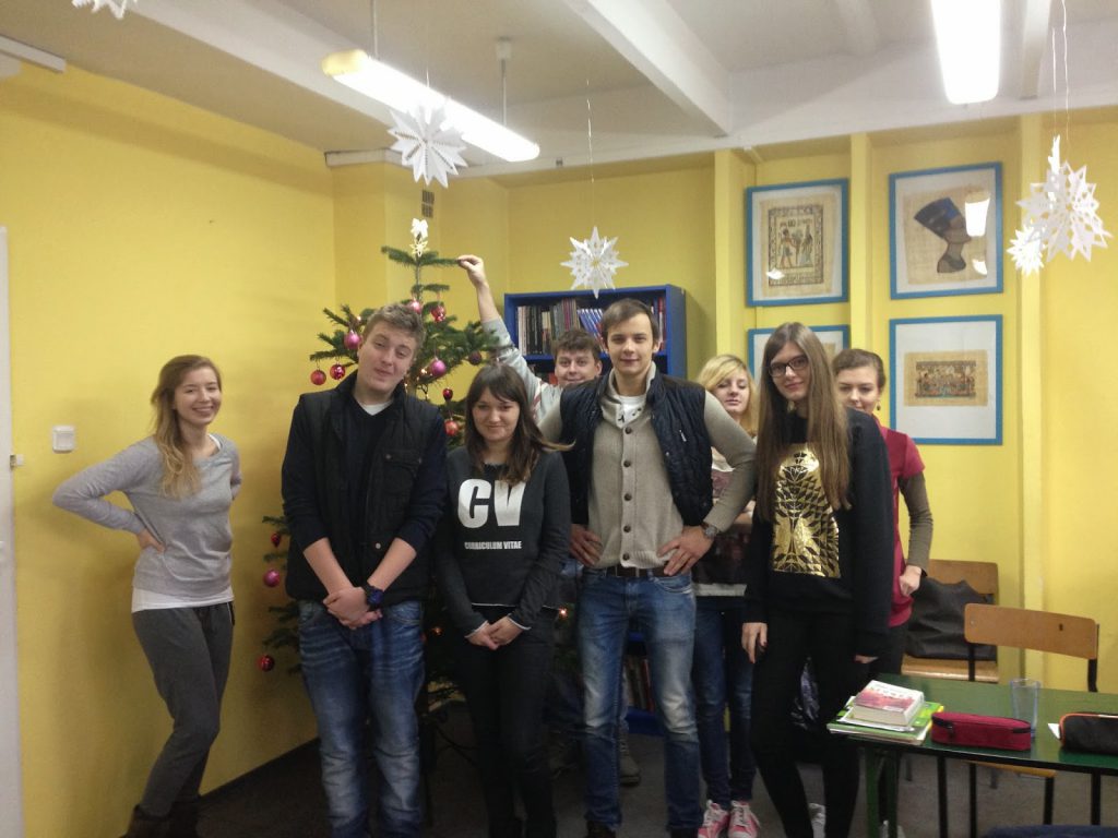 W naszych szkołach trwa grudniowy konkurs na najpiękniej i najbardziej oryginalnie ustrojoną klasę – wszyscy stanęli na wysokości zadania – nauka (albo pisanie próbnych egzaminów gimnazjalnych;)) przy blasku świątecznych lampek i kolorowych łańcuchów jest naprawdę przyjemniejsza.