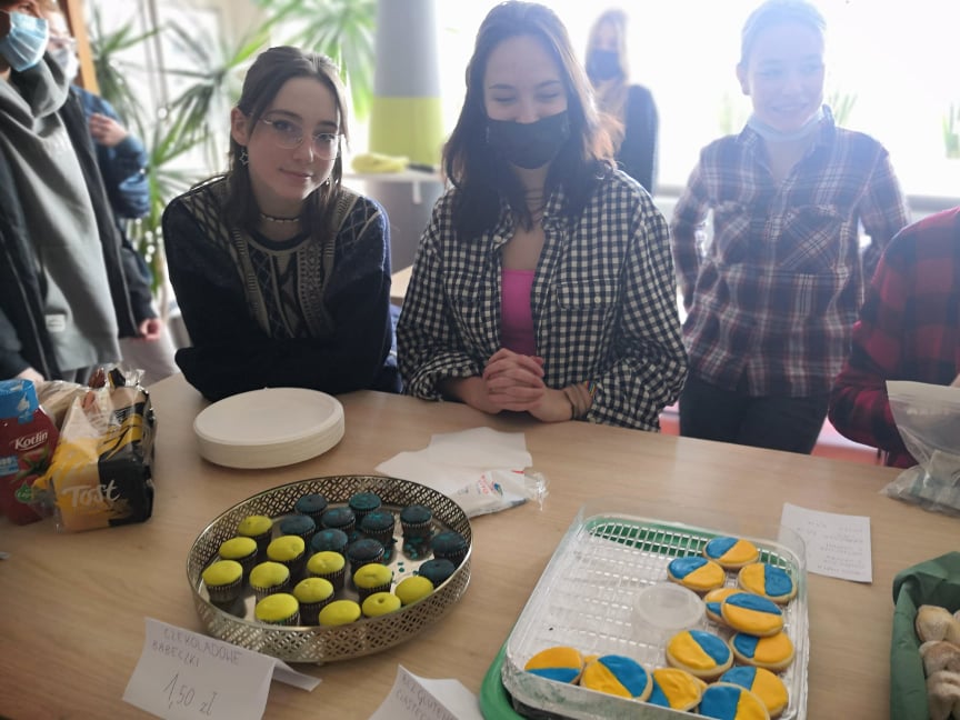 Wczorajsze atrakcje w projekcie „15 dni dla Ukrainy” przygotowane przez klasę 3LA przyniosły ponad 900 złotych! A dziś rządziła 8A: były kolorowe ciastka, pyszne tosty, ciasteczka z wróżbą, w których