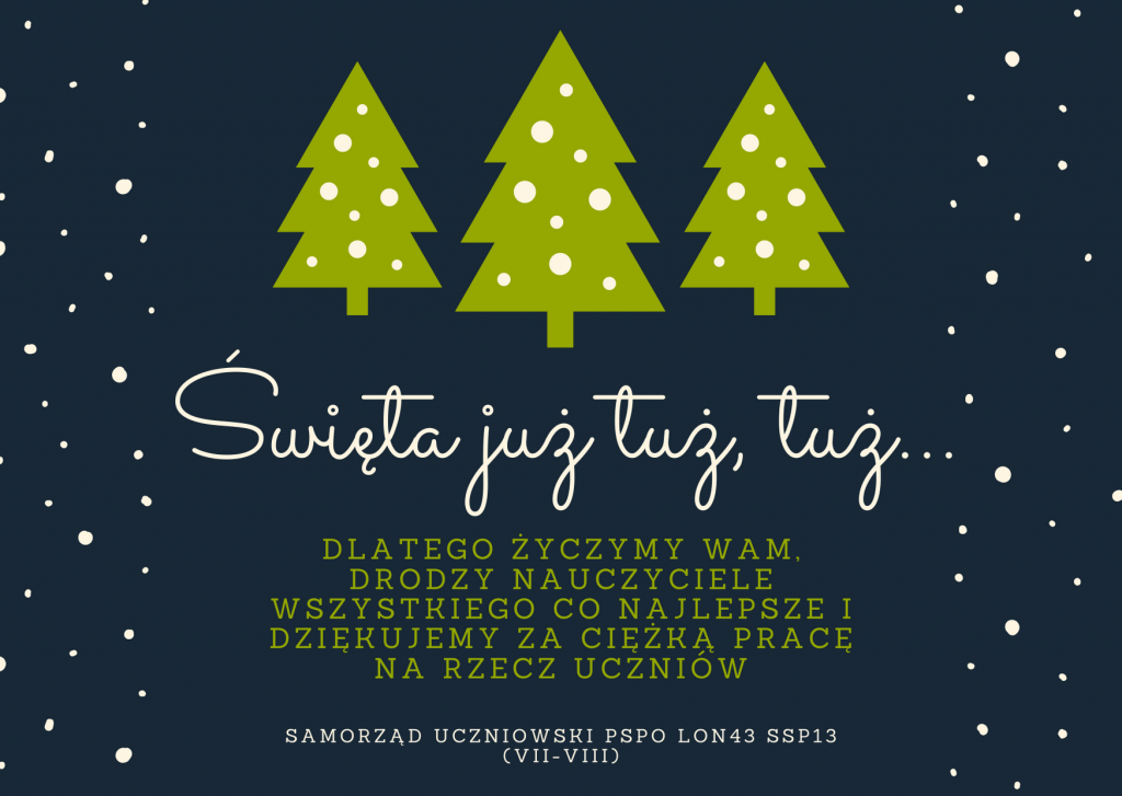 Nasz Samorząd przygotował takie piękne życzenia dla nauczycieli:))) Chcielibyśmy Państwu złożyć serdeczne życzenia z okazji Świąt Bożego Narodzenia. Przesyłamy Wam dużo pozytywnej energii oraz ciepła. Samorządzie, dziękujemy! Jesteśmy pod wrażeniem