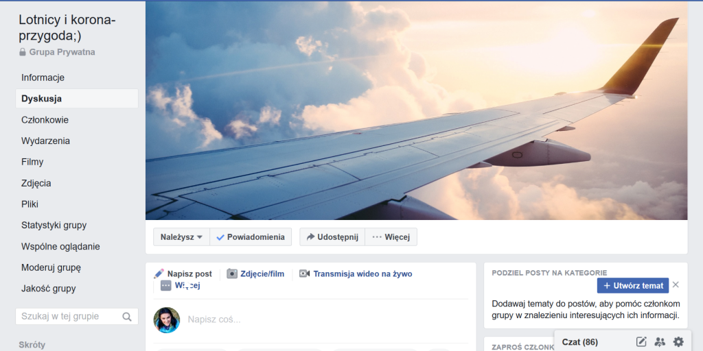 Nasza facebookowa grupa „Lotnicy i korona-przygoda” ma się bardzo dobrze. Dzielimy się na niej bieżącymi informacjami, dyskutujemy, wspieramy, śmiejemy się. Prośby o dołączenie wysyłają uczniowie spoza naszych szkół;) Oczywiście –