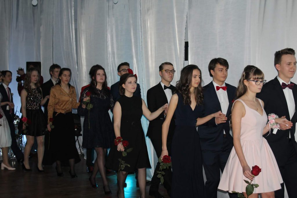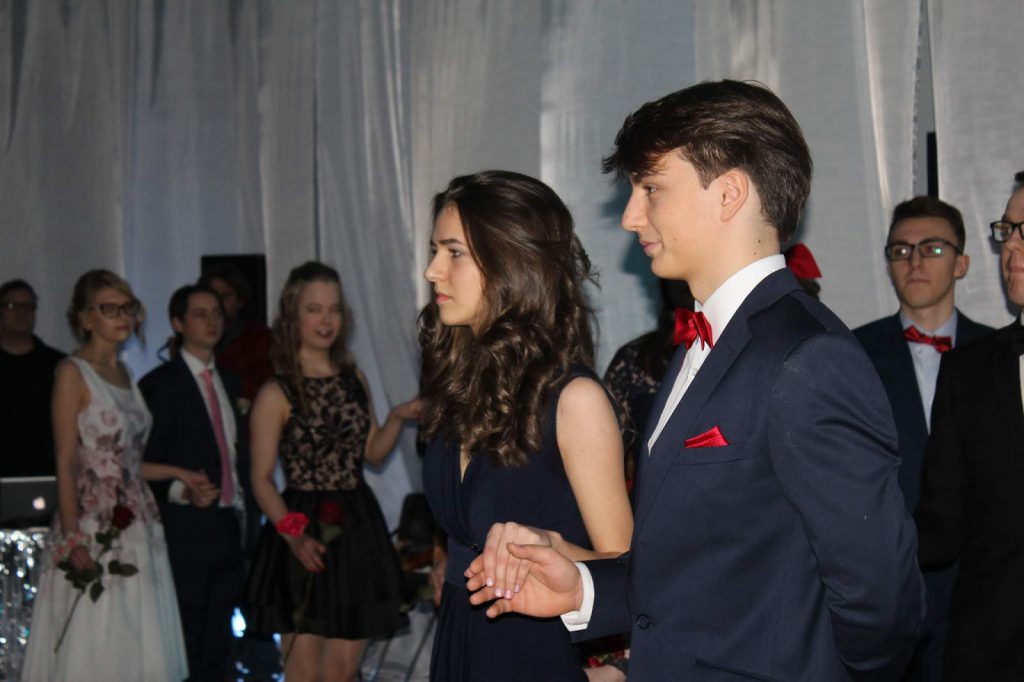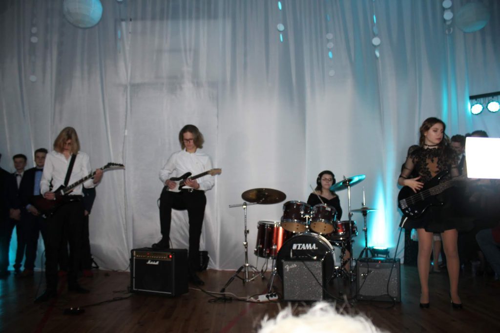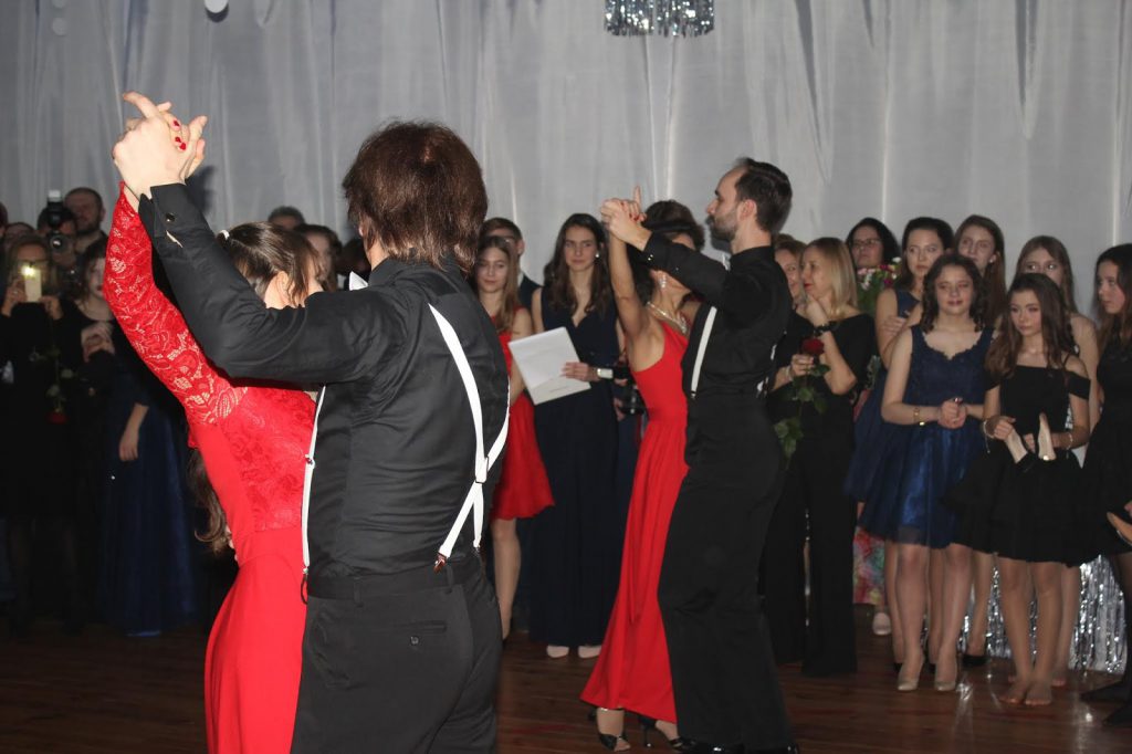 Bal Zimowy 2019 już za nami. Jak co roku było odświętnie, elegancko i baaardzo magicznie. Tym bardziej, że czekało nas sporo niespodzianek: oprócz tradycyjnego poloneza w wykonaniu naszych maturzystów, podziwialiśmy też klasy trzecie gimnazjum w pięknym walcu angielskim. Poza tym występy muzyczne – naszego rockowego składu z gimnazjum, klasycznie-nieklasycznych klimatów w wykonaniu Marysi z 3LO i jej partnera (kapitalna aranżacja „Despacito” na skrzypce i altówkę) oraz… naszej absolwentki – Julki, która – jak widać – tęskni do naszej szkoły??