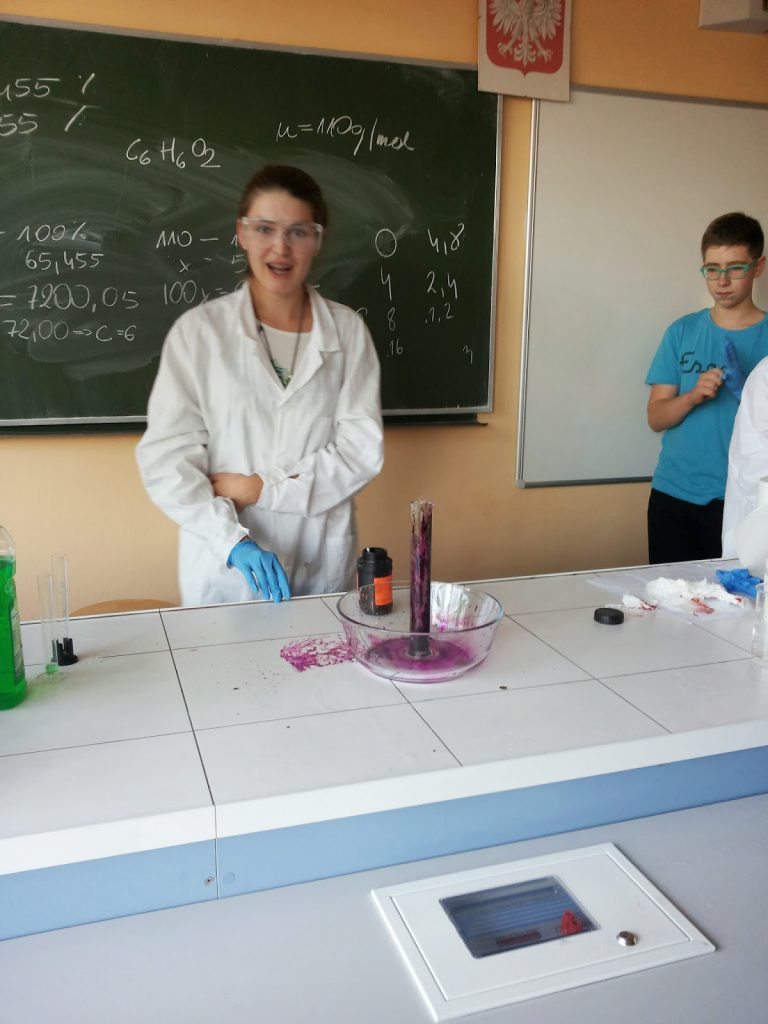 Kółko chemiczne pracuje pełną parą. W tym roku do doświadczonych chemików – Antka i Mateusza dołączyli Ola, Nina i Maciek.