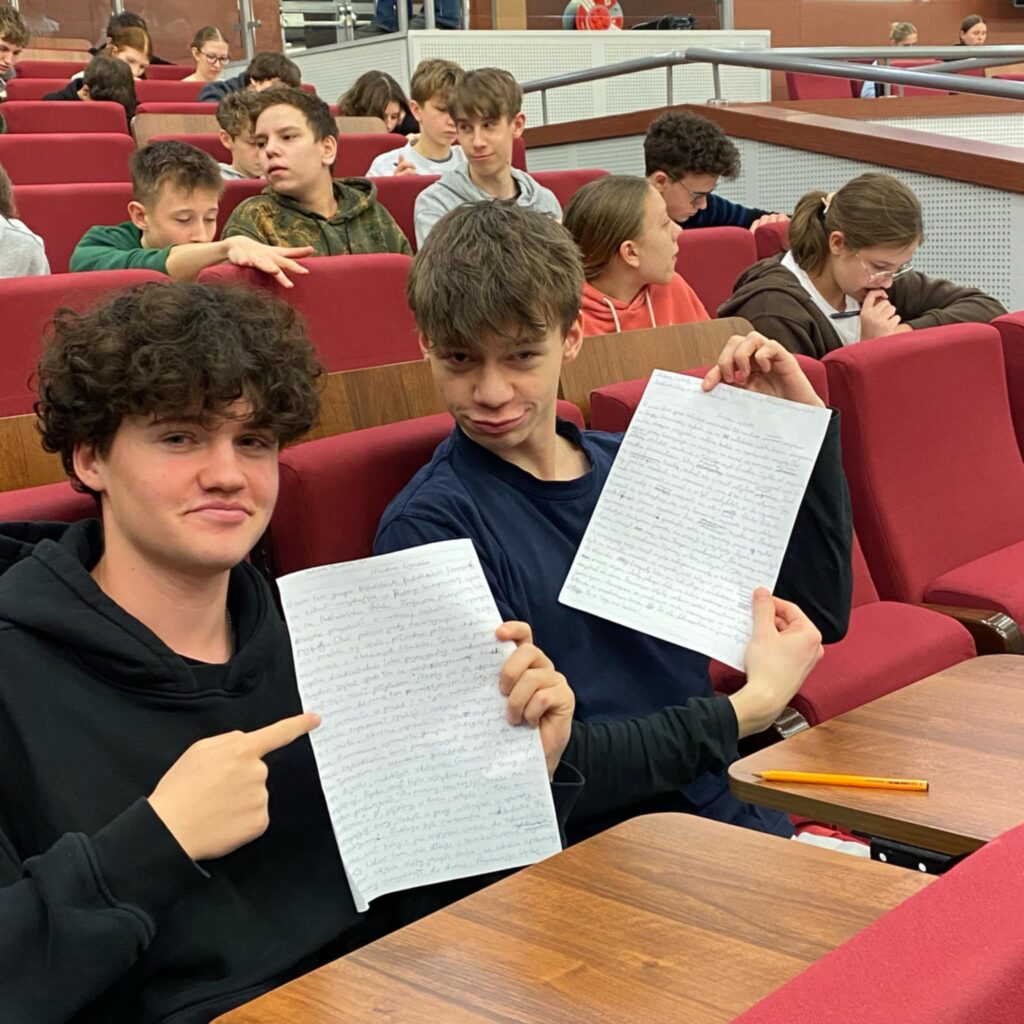 Jak co roku w związku z obchodami Dnia Języka Ojczystego napisaliśmy dyktando – pisali naprawdę wszyscy, panie z biblioteki i administracji także. A ponieważ pojawili się też goście z Motylkowej