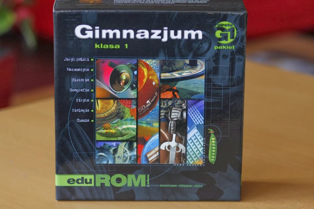 Pakiet edukacyjny do gimnazjum (bez fizyki, chemii i biologii). Przekazała na licytację Lena Wróbel, cena wywoławcza 6zł.