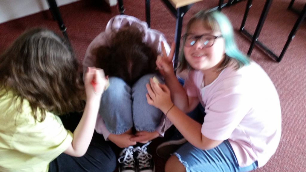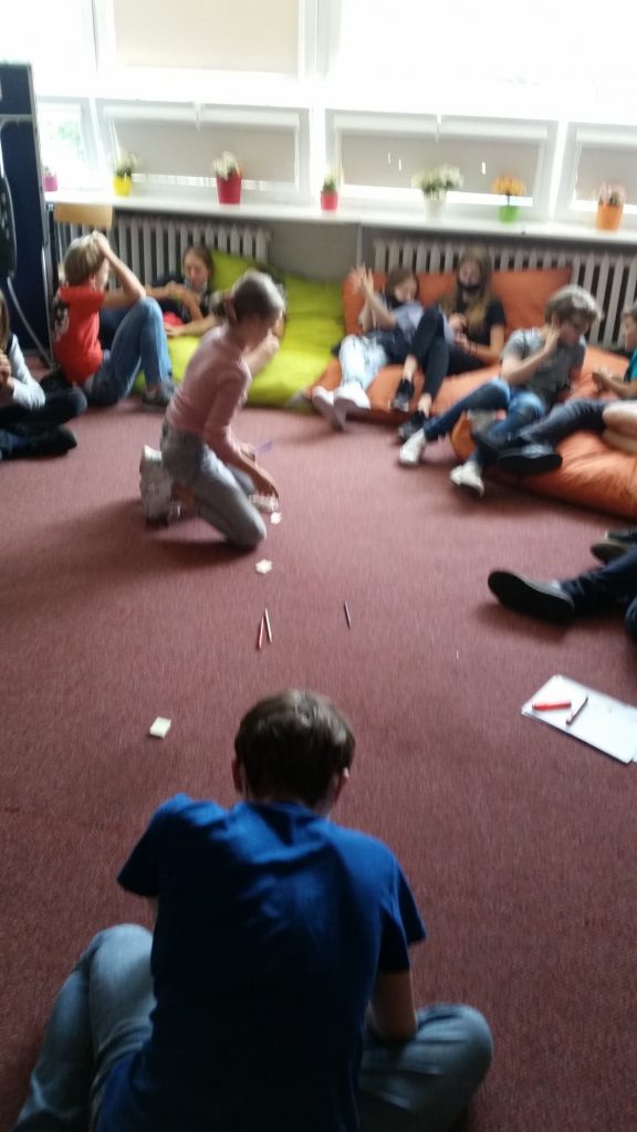 Uczniowie klas siódmych i pierwszych liceum dzielili się tym, co dla nich znaczy „być w kropce”, jakie te nasze „kropki” są, jak czujemy się wtedy, gdy jesteśmy w kropce, a przede wszystkim – do kogo możemy się zwrócić o pomoc, gdy czujemy, że jesteśmy w kropce.