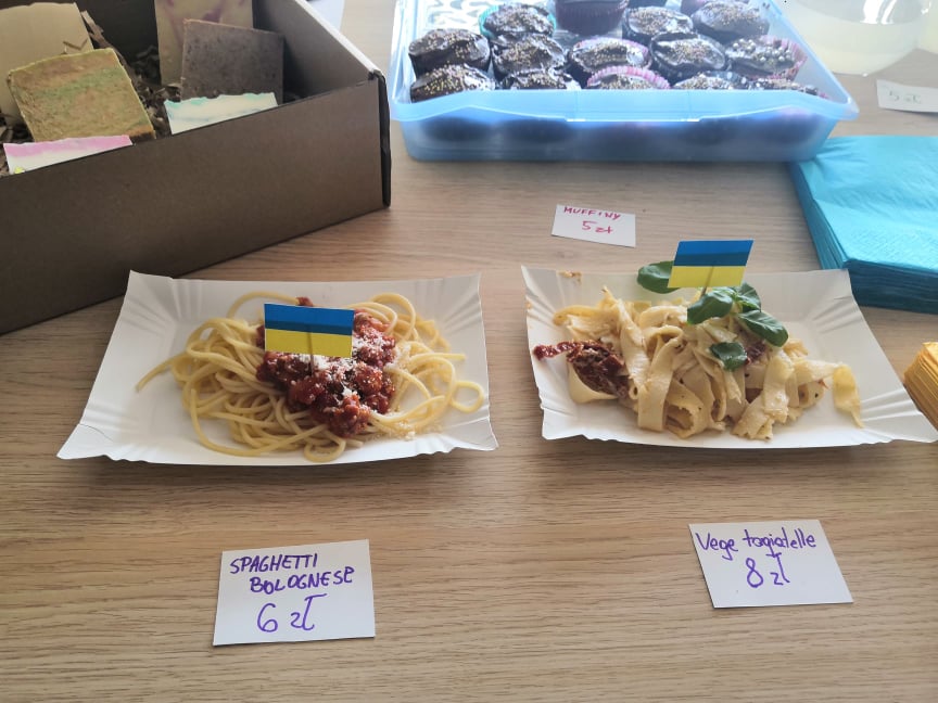 Wasza kreatywność podczas dni ukraińskich robi wrażenie! Dziś rządziła klasa 7A: było mnóstwo pysznego jedzenia, biżuteria, cudowne mydła p. Bożeny i prawdziwy hit: spaghetti bolognese i vege tagiatelle:)))