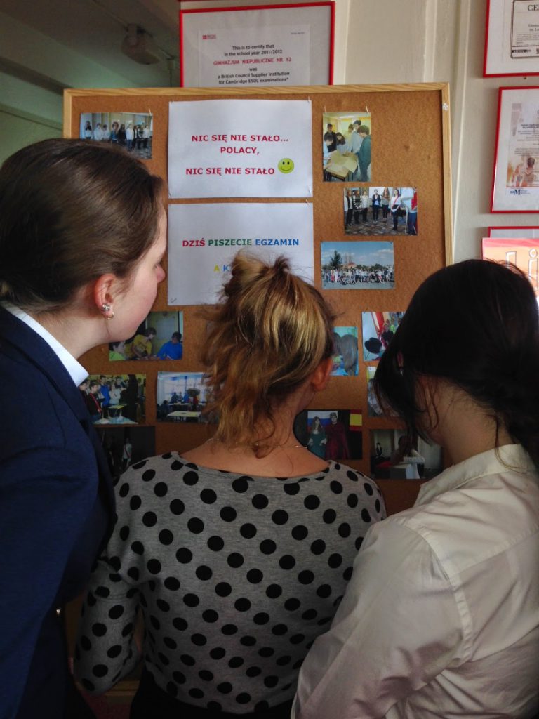 Dziś ostatni dzień egzaminacyjnych zmagań trzecioklasistów… Emocje powoli opadają… Oby tylko nie opadły te pozytywne!:)) O to dba nasza szkoła: pani dyrektor z panią Roksaną przygotowały wspomnieniową niespodziankę – na fotografiach sprzed lat niektórzy uczniowie nie mogli poznać samych siebie;))