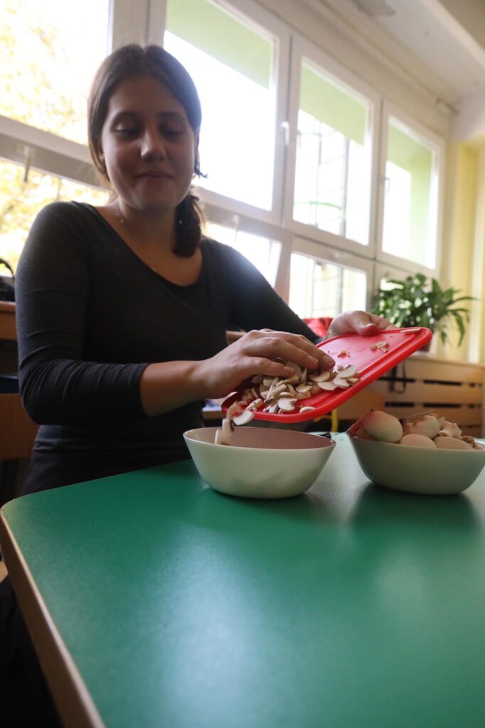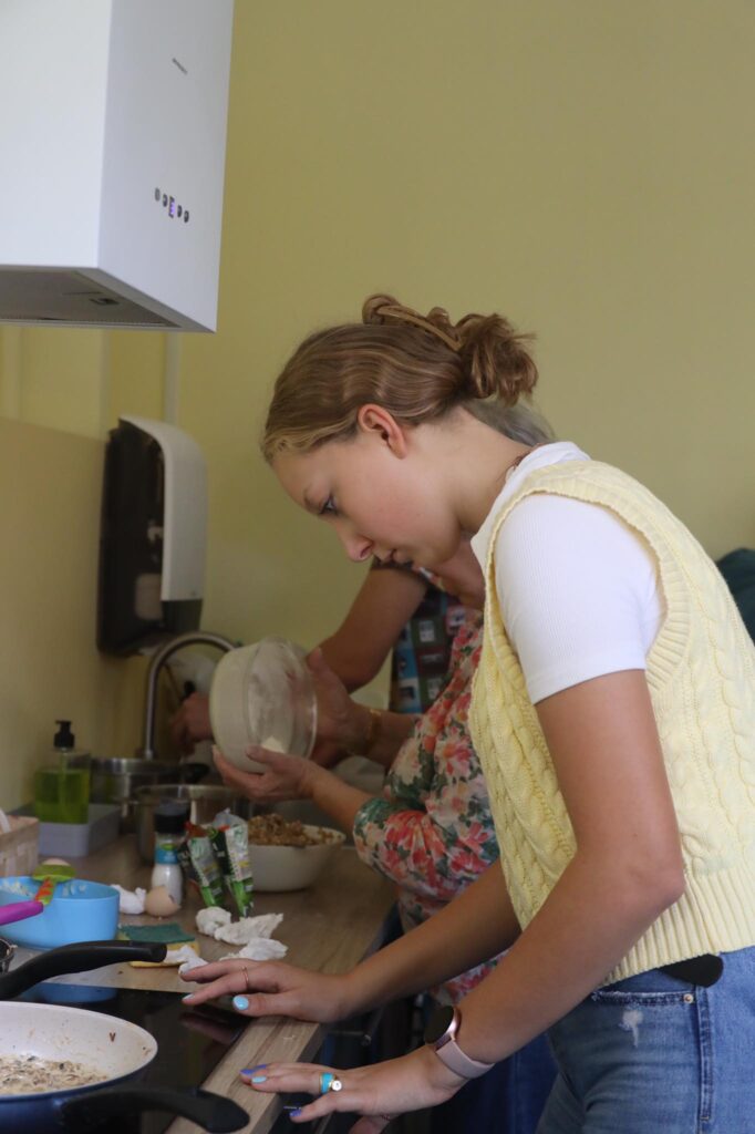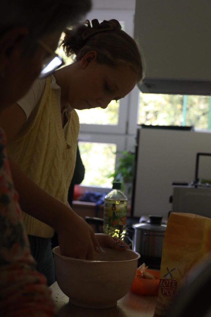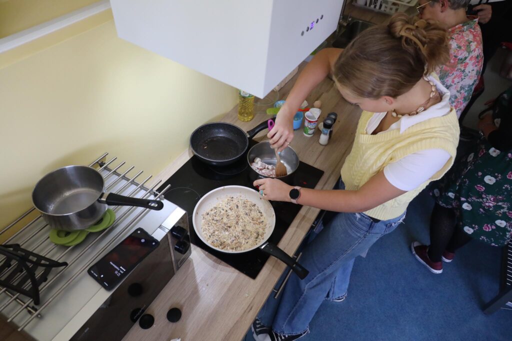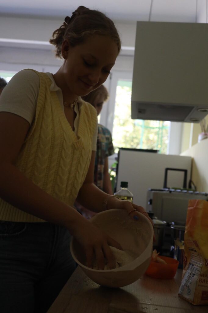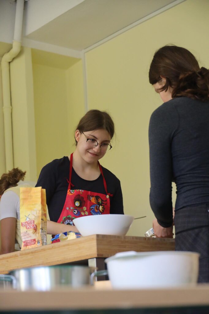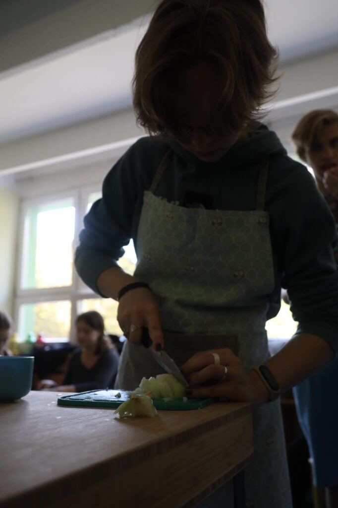 Bierzemy właśnie udział w projekcie Erasmus+ dla liceów. Współpracujemy ze szkołami z Niemiec, Finlandii i Hiszpanii nad projektem „We need our nature, our nature needs us”. W ramach pierwszego spotkania, które miało się odbyć w Niemczech, ale z powodu pandemii odbywa się online, przyglądamy się naszemu gotowaniu i zastanawiamy się, co możemy robić lepiej, bardziej ekologicznie i zdrowiej. W pierwszym dniu warsztatów gotowaliśmy typowe dla naszych krajów dania. Ośmioro naszych uczniów – Hania, Marta i Nina z klas 1 liceum, Marianna i Ola z klasy 2Lp oraz Kuba, Wiktor i Mateusz z klasy 3Lm – przygotowało wspólnie zapiekankę z kaszą gryczaną, wspaniałe ruskie pierogi, pierogi ze śliwkami i śliwki pod kruszonką. Mieliśmy przy tym mnóstwo zabawy i nabyliśmy sporo przydatnych umiejętności. Poznaliśmy też uczniów z innych krajów, z którymi podzieliliśmy się wrażeniami z gotowania 🙂