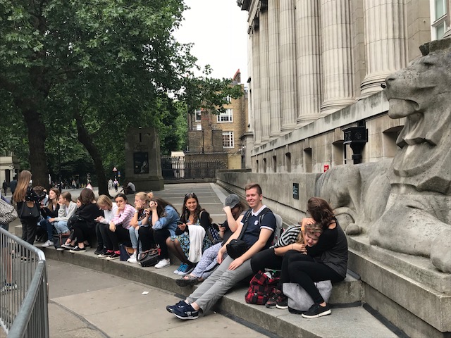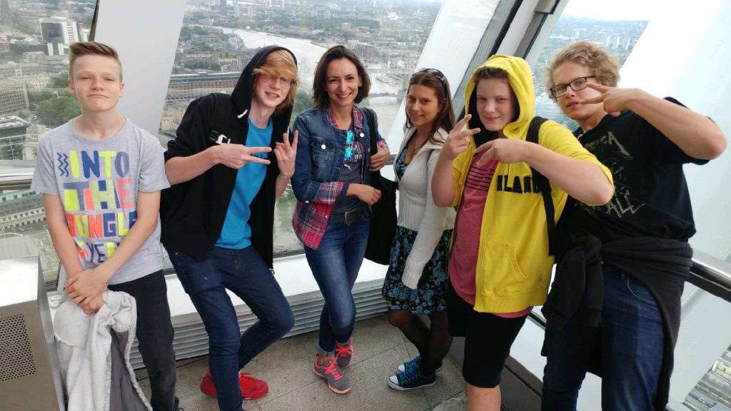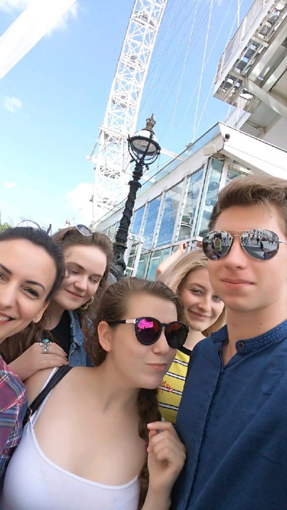Potem przyszedł czas na intensywne zwiedzanie: było Sky Garden Tower, które to ogrody wzbudziły zachwyt dziewczyn; było Tower of London, przed którego wejściem zrobili sobie fotkę z zaprzyjaźnioną grupą z innej warszawskiej szkoły:), było też British Museum z wirtualnym Gebelein Manem sprzed 5 tys. lat… i wiele, wiele innych atrakcji:))