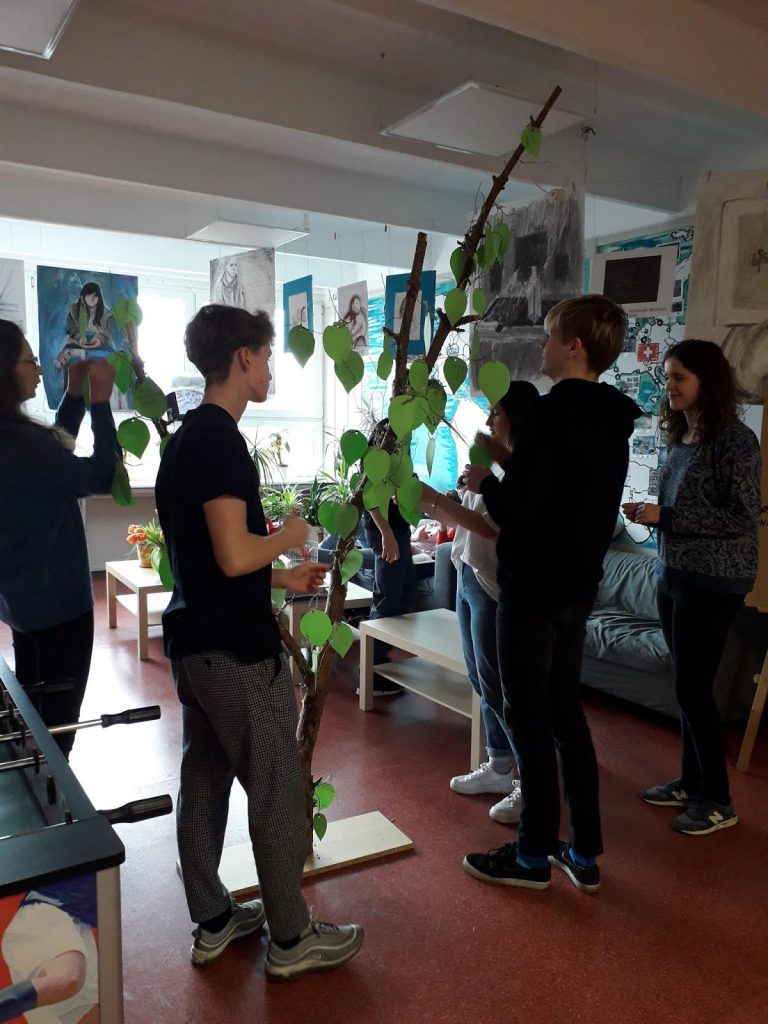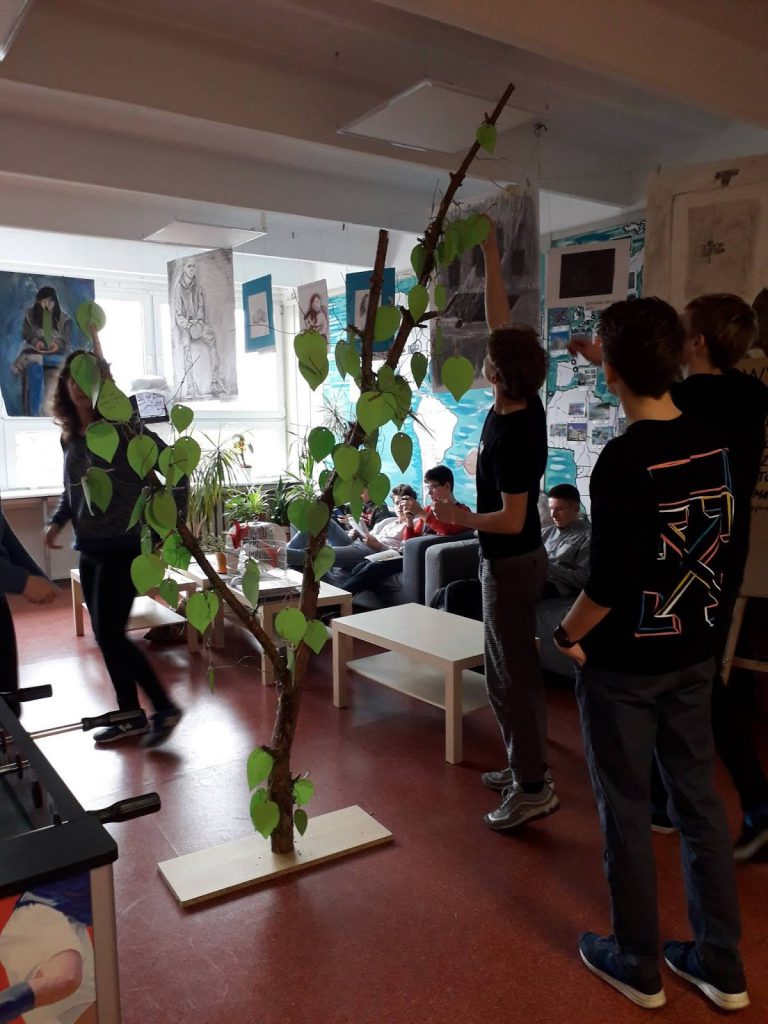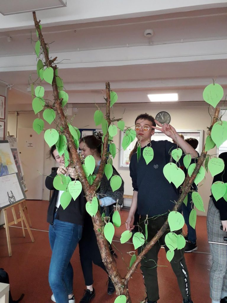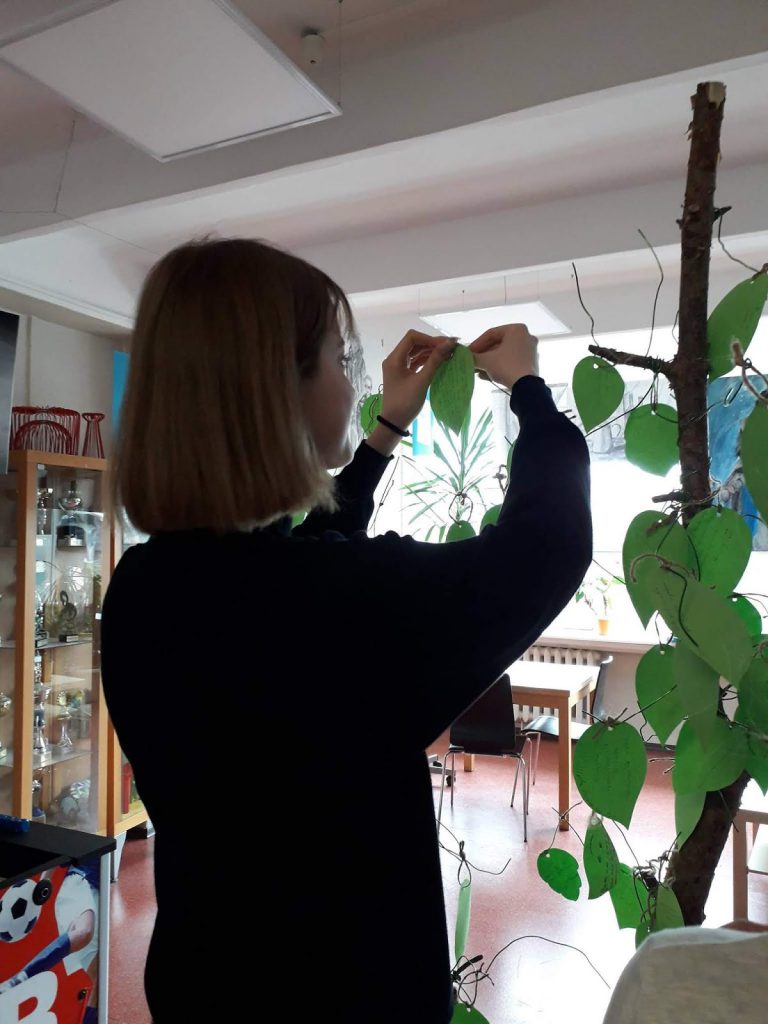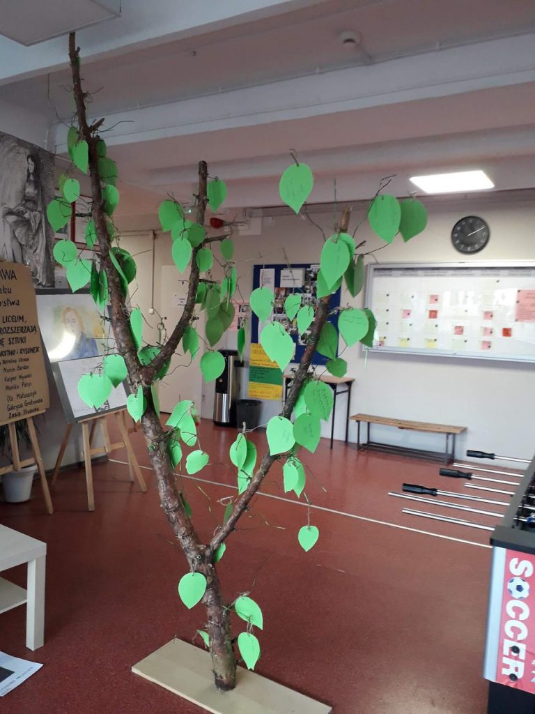 obecna w szkole otrzymała papierowy liść, na którym zapisała swoje