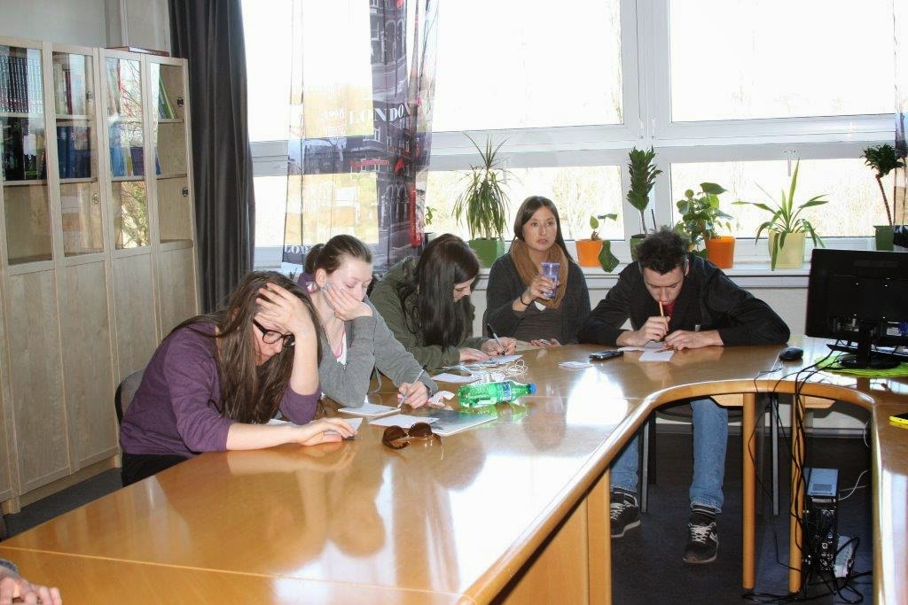 Następnie: wspólne opracowanie ankiet, jakie przeprowadzaliśmy podczas spaceru po Starówce. Dotyczyły one stereotypów we wzajemnym postrzeganiu się naszych narodów.