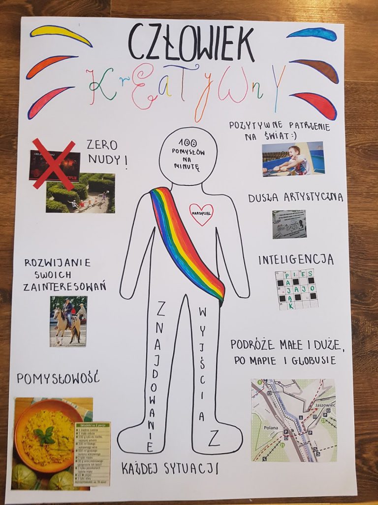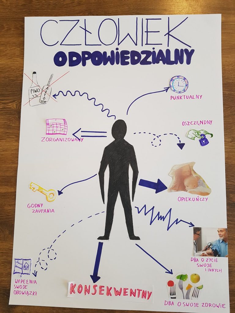 Na wyjeździe integracyjnym kolejne przygody: była i Edukacja Dla Bezpieczeństwa, był park linowy, Sokolarnia na Czantoriii, otrzęsiny (dla licealistów), plac zabaw i ognisko (dla siódmoklasistów). Mamy też efekt pracy twórczej naszych licealistów – plakaty z cechami współczesnego człowieka.
