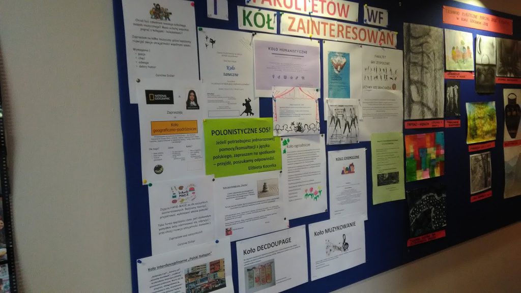 Na jednej z nich pojawiają się właśnie oferty kół, fakultetów i różnorodnych dodatkowych zajęć – warto skorzystać i rozwijać swoje pasje! Sprawdźcie tematykę i porozmawiajcie z nauczycielami na temat możliwych terminów!