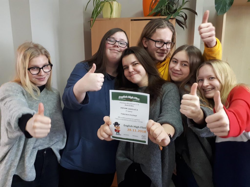 Kilkoro naszych uczniów z klas 7, 8, 3G, 1L i 2L otrzymało dyplomy z dobrymi lub bardzo dobrymi wynikami w English High Flier, to znaczy, że dostali powyżej 80%! W tym jedna z osób – Paula z 3B – otrzymała 100% i zajęła I miejsce w kraju!!!!!