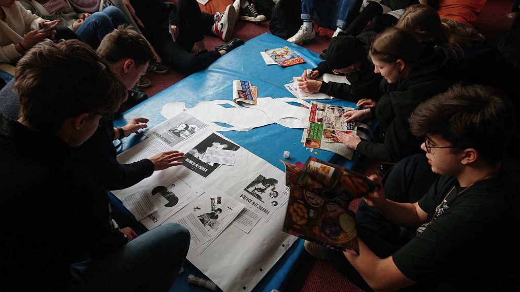 Co robiliśmy? Quiz z okazji Dnia Kobiet – trochę wiedzy ogólnej i historycznej o sufrażystkach, nadaniu praw wyborczych kobietom, feminizmie, emancypacji. Potem część „bliższa ciału”, czyli przedstawienie sylwetek silnych kobiet, które pozdrawiają Was z plakatów, porozwieszanych po szkole 😉 Czy umiecie je rozpoznać, powiedzieć parę słów, kim były? Dopasuj sylwetkę silnej kobiety do jej dokonań, naklejając na brystol. Powiedz, jaki film o znanej polskiej kobiecie – naukowcu wchodzi właśnie do kin? Na koniec wyklejenie kobiecych sylwetek wycinkami/wyrywkami z gazet – tak powstały nasze kolaże.