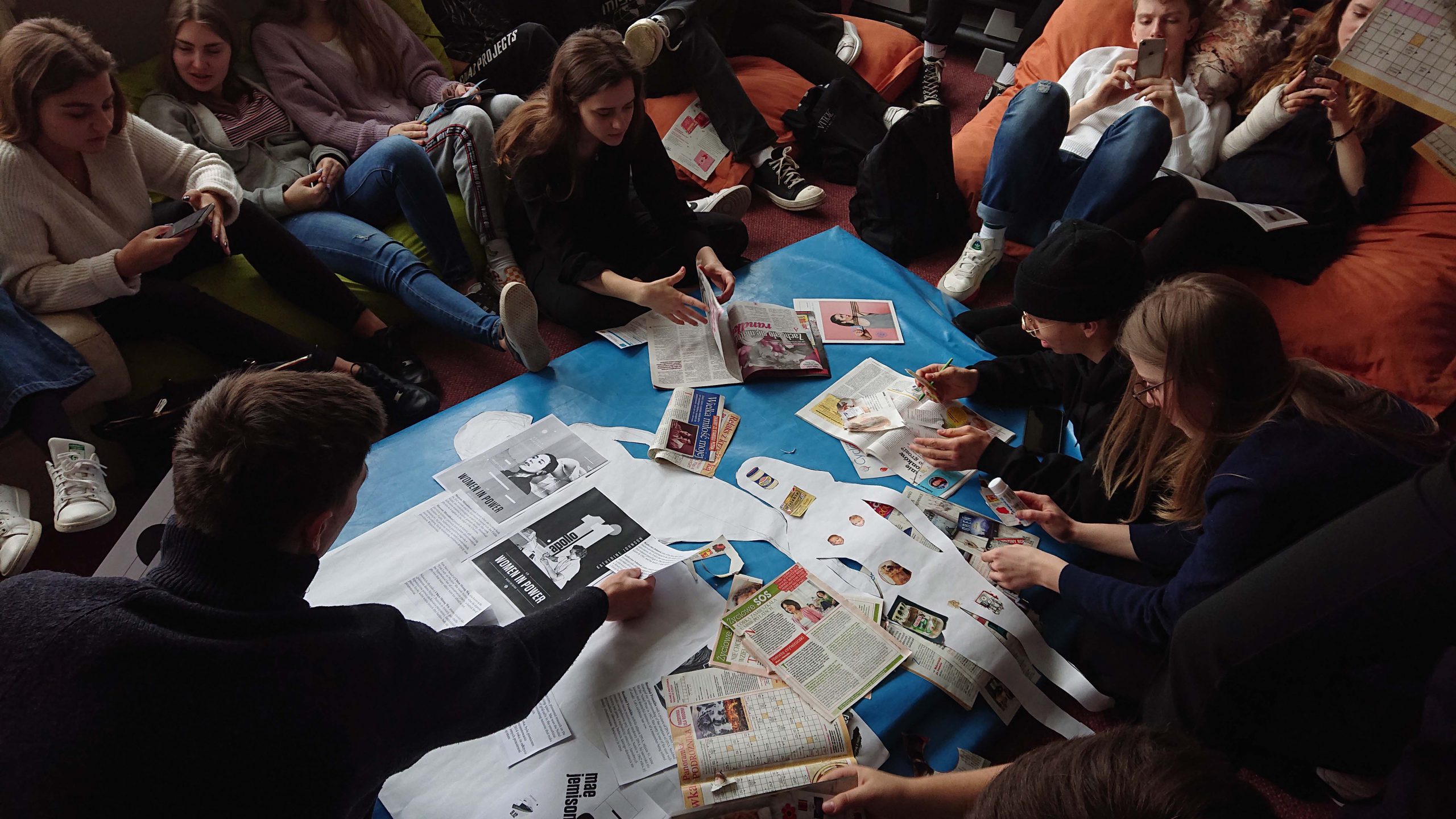 Co robiliśmy? Quiz z okazji Dnia Kobiet – trochę wiedzy ogólnej i historycznej o sufrażystkach, nadaniu praw wyborczych kobietom, feminizmie, emancypacji. Potem część „bliższa ciału”, czyli przedstawienie sylwetek silnych kobiet, które pozdrawiają Was z plakatów, porozwieszanych po szkole 😉 Czy umiecie je rozpoznać, powiedzieć parę słów, kim były? Dopasuj sylwetkę silnej kobiety do jej dokonań, naklejając na brystol. Powiedz, jaki film o znanej polskiej kobiecie – naukowcu wchodzi właśnie do kin? Na koniec wyklejenie kobiecych sylwetek wycinkami/wyrywkami z gazet – tak powstały nasze kolaże.