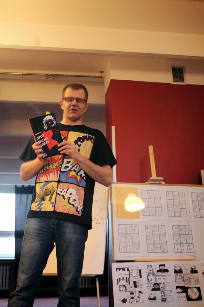 Podczas dnia komiksów z koleżanką przyniosłyśmy własne książki, czym uatrakcyjniłyśmy wykład pana Tomasza.