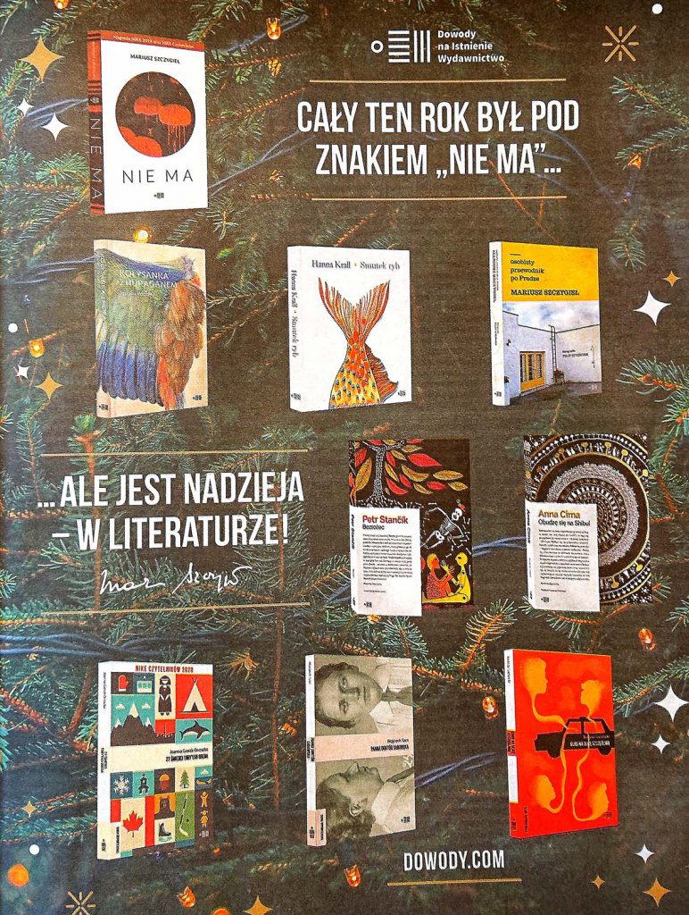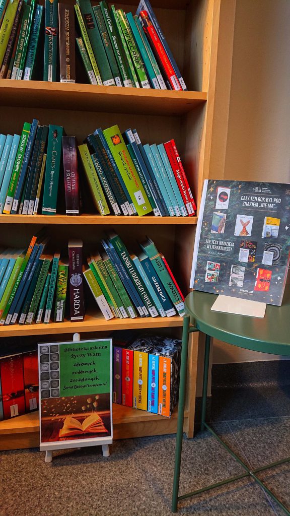 Biblioteka szkolna życzy Wam zdrowych, radosnych, zaczytanych Świąt Bożego Narodzenia! Jak mówi Mariusz Szczygieł, zeszłoroczny zdobywca nagrody NIKE za książkę „Nie ma”: „Cały ten rok był pod znakiem „Nie ma”…… Ale jest nadzieja w literaturze!”