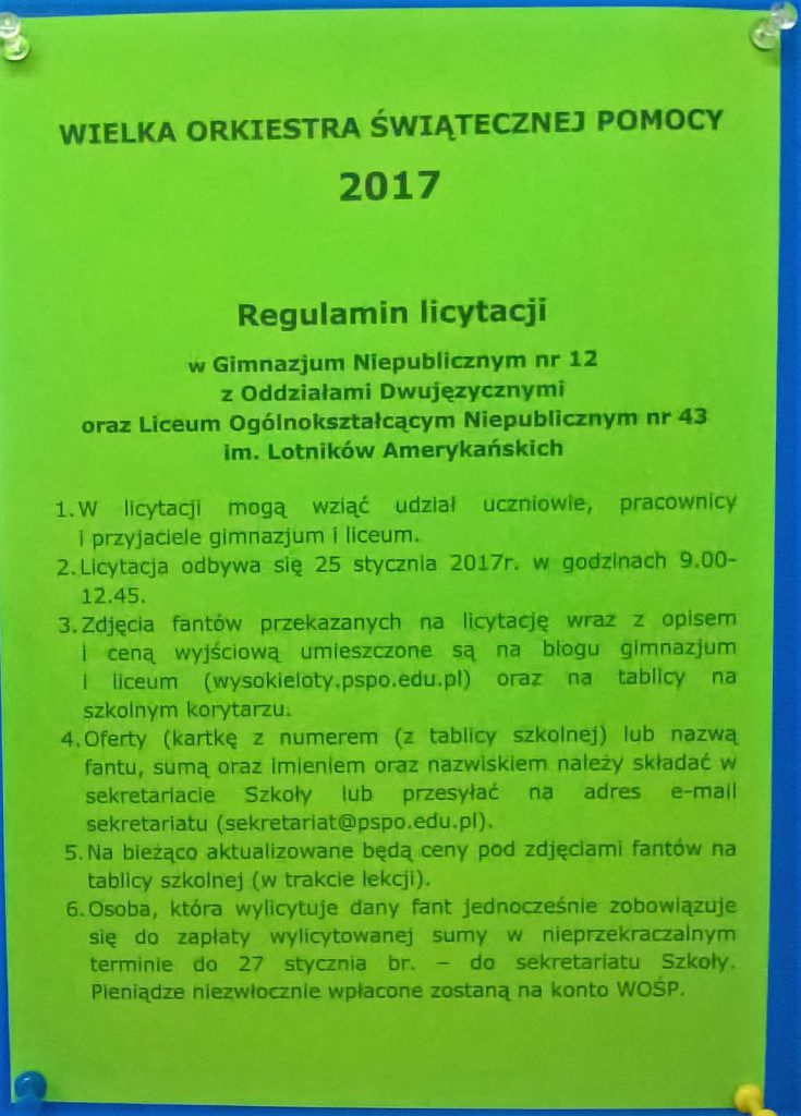 Wszystko już gotowe do jutrzejszej licytacji! Nie pozostaje nam nic innego jak podzielić się z Wami regulaminem i zaprosić do jutrzejszego „szaleństwa”! Bądźcie hojni, sprawa jest wielka! Czy pobijemy zeszłoroczny rekord – 5.404,00 zł? Nie może być inaczej!:))