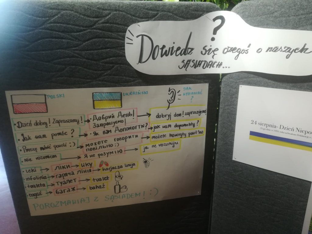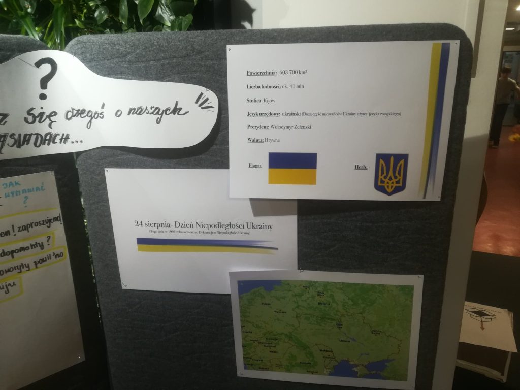Projekt zaczyna 3LA: mamy poczęstunek, mamy informacje na temat Ukrainy ( w tym mini słownik), radiowęzeł zbiera pieniądze, realizując Wasze dedykacje. Mamy też kapitalne wyzwanie dla Was – rysowanie na czas granic Ukrainy (oczywiście z Krymem!!!!:))))